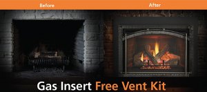 Gas inserts are boxes, which slide into an existing fireplace. These units burn a controlled amount of gas, with a sealed glass panel on the front opening, with 2 small diameter vents for exhaust and intake air. These units will commonly draw in air through one 3-4″ vent liner and then dump left over gasses out a second liner of similar diameter. This liner runs all the way through the original existing chimney. When installing these liners, they also install a top plate which stops cold air from dropping down the flu. This cold air dropping is usually what is causing the chilly drafting that is common for fireplaces.